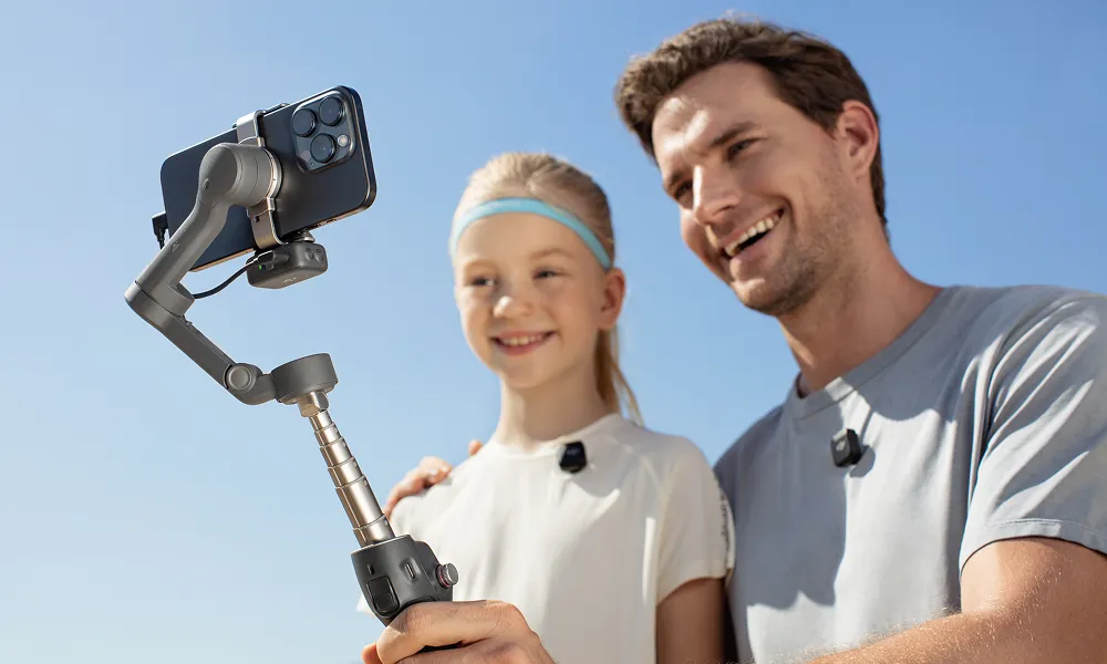 Med den indbyggede forlængelsesstang i Osmo Mobile 7P kan du inkludere flere venner, kæledyr eller betagende scenerier i dine selfies og låse op for kreative høje og lave vinkler til dine vlog-optagelser.